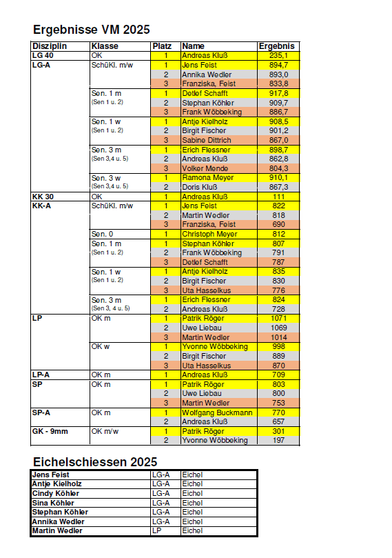 Die Ergebnisse der Schießwettbewerbe im Einzelnen: